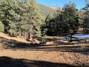 Situated in the southern Sacramento Mountains just east of Alamogordo, New Mexico, Elk Springs Ranch is a true mountain sanctuary. At 7,500 feet, it sits at the ideal elevation for this latitude, with pleasant summer highs often in the 70s and winter highs usually in the 40s. This climate also nurtures a thriving elk population that frequents the ranch’s mountain valleys. With several developed springs providing ample water, the ranch also attracts mule deer and black bear, making it a premier hunting retreat. Elk Springs Ranch qualifies for three bull elk tags and three cow elk tags annually, offering exceptional hunting opportunities for you and a few of your closest friends.